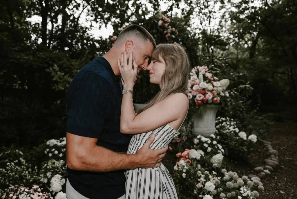 Swift dhe Kelce postuan disa fotografi ku sportisti shihet duke u gjunjëzuar në një kopsht me lule për t’i propozuar këngëtares me një unazë fejese.