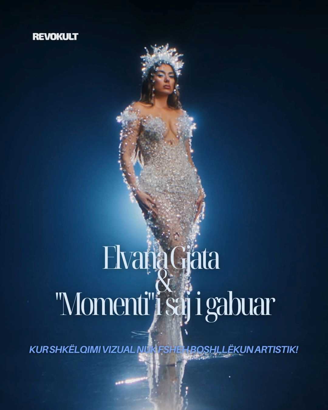 Që në sekondat e para, kenga vishet me kristale. Elvana shfaqet si një mbretëreshë akulli, e ftohtë, e shndritshme, e izoluar në një estetikë minimaliste ku kamera i bindet vetëm shkëlqimit të saj. Por ky shkëlqim kërcet sapo hapet goja.