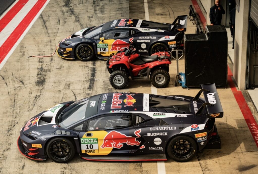 Në këtë skenë shfaqen dy makina garash Lamborghini Huracán GT3 EVO2, të përgatitura dhe menaxhuara nga skuadra ABT Sportsline, një emër i njohur në botën e motorsportit.